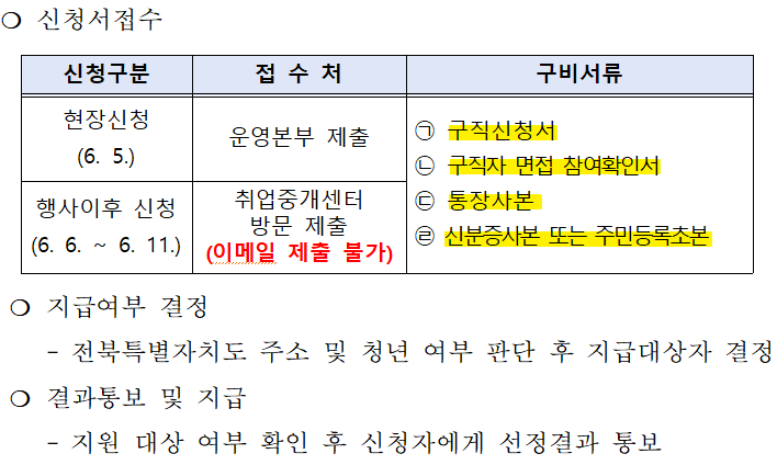 O 구 직 자: 하단 서류 준비 후 당일 행사장 방문